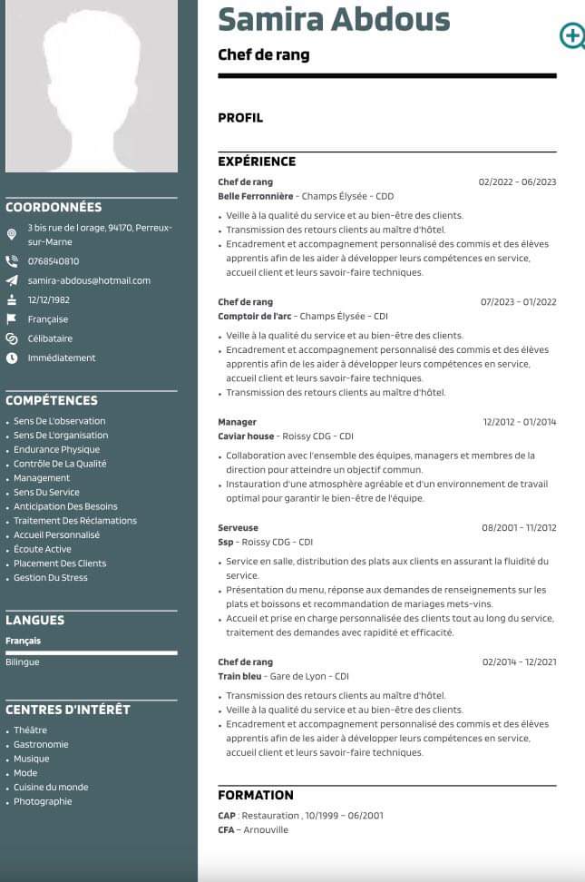 | Nassima CHERIF Née KEBBAB | En recherche d’emploi | Employés | Fonction comptabilité et finances | Télécharger | |