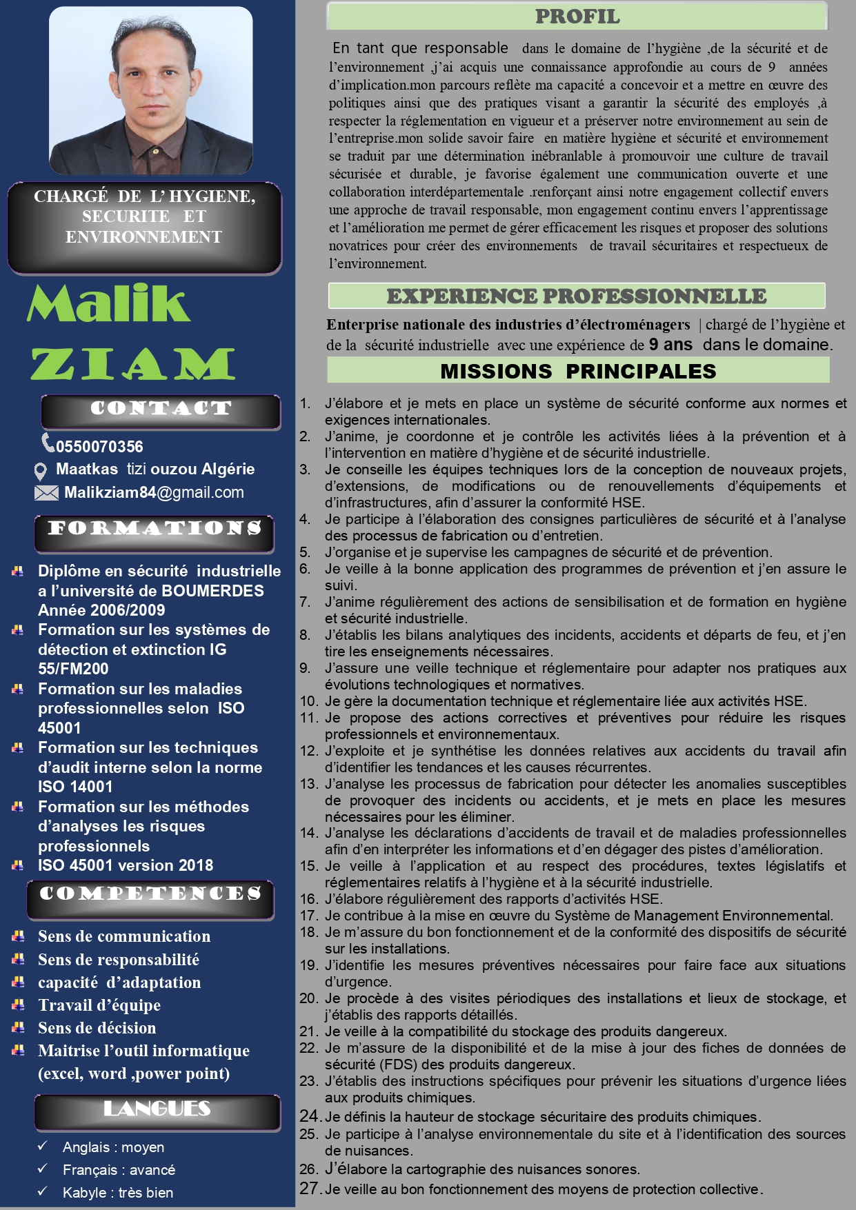| Malik Ziam | Salarié du secteur public | Techniciens | Autre | Télécharger | |