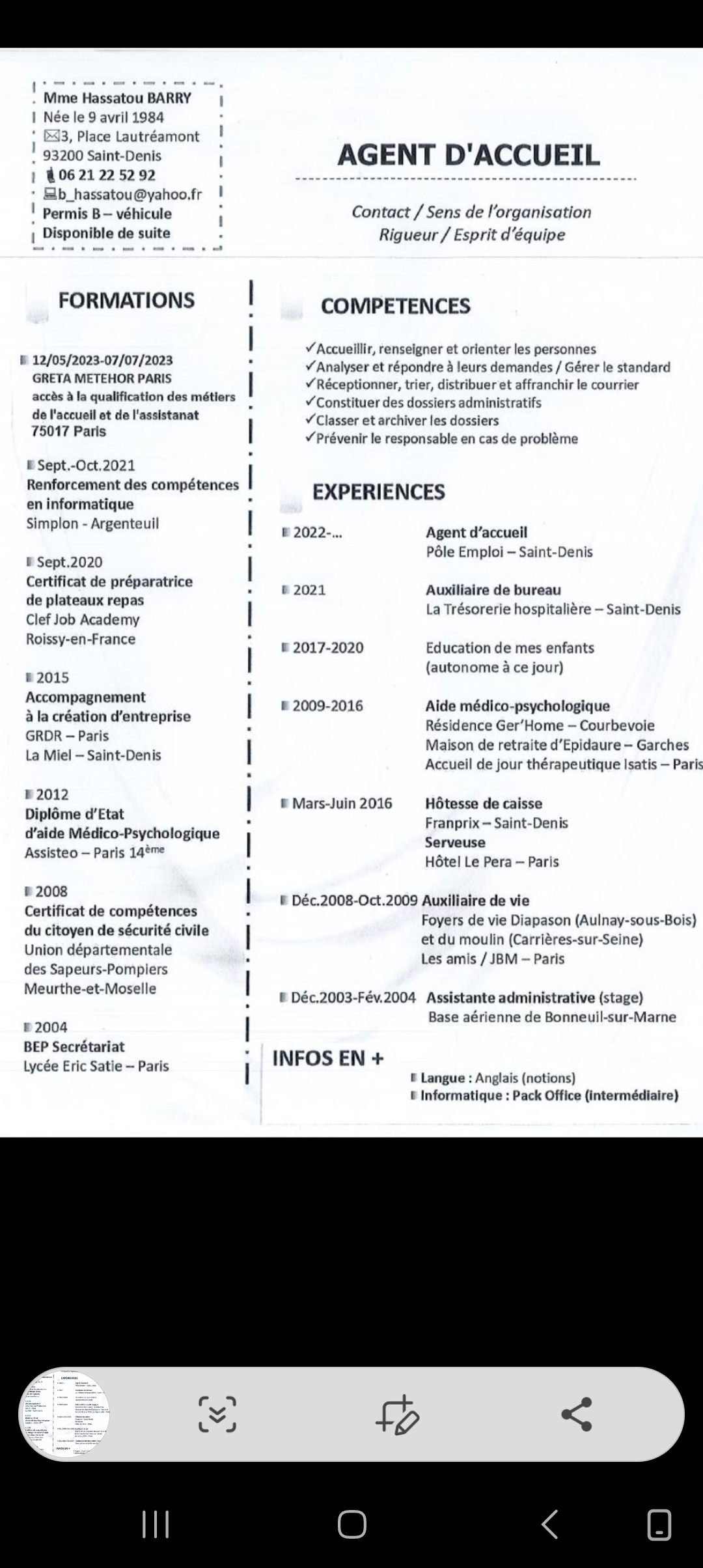 | Hassatou DIALLO | Salarié du secteur privé | Employés | Fonction accueil, secrétariat | Télécharger | |