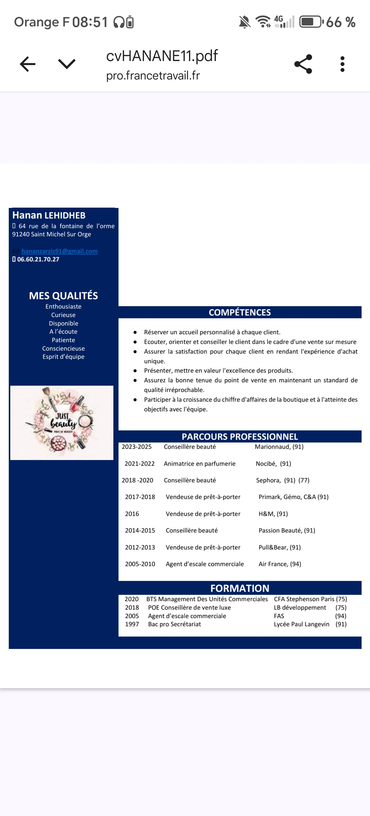 | naima Deramchi | En recherche d’emploi | Cadres | Autre | Télécharger | |
