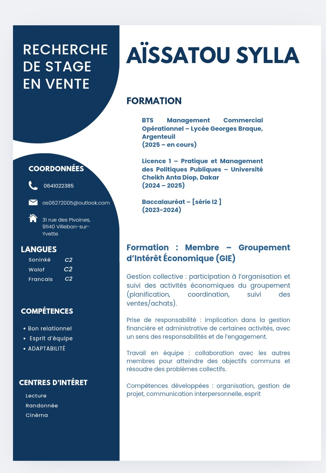| Adama Coulibaly | En recherche d’emploi | Employés | Autre | Télécharger | |