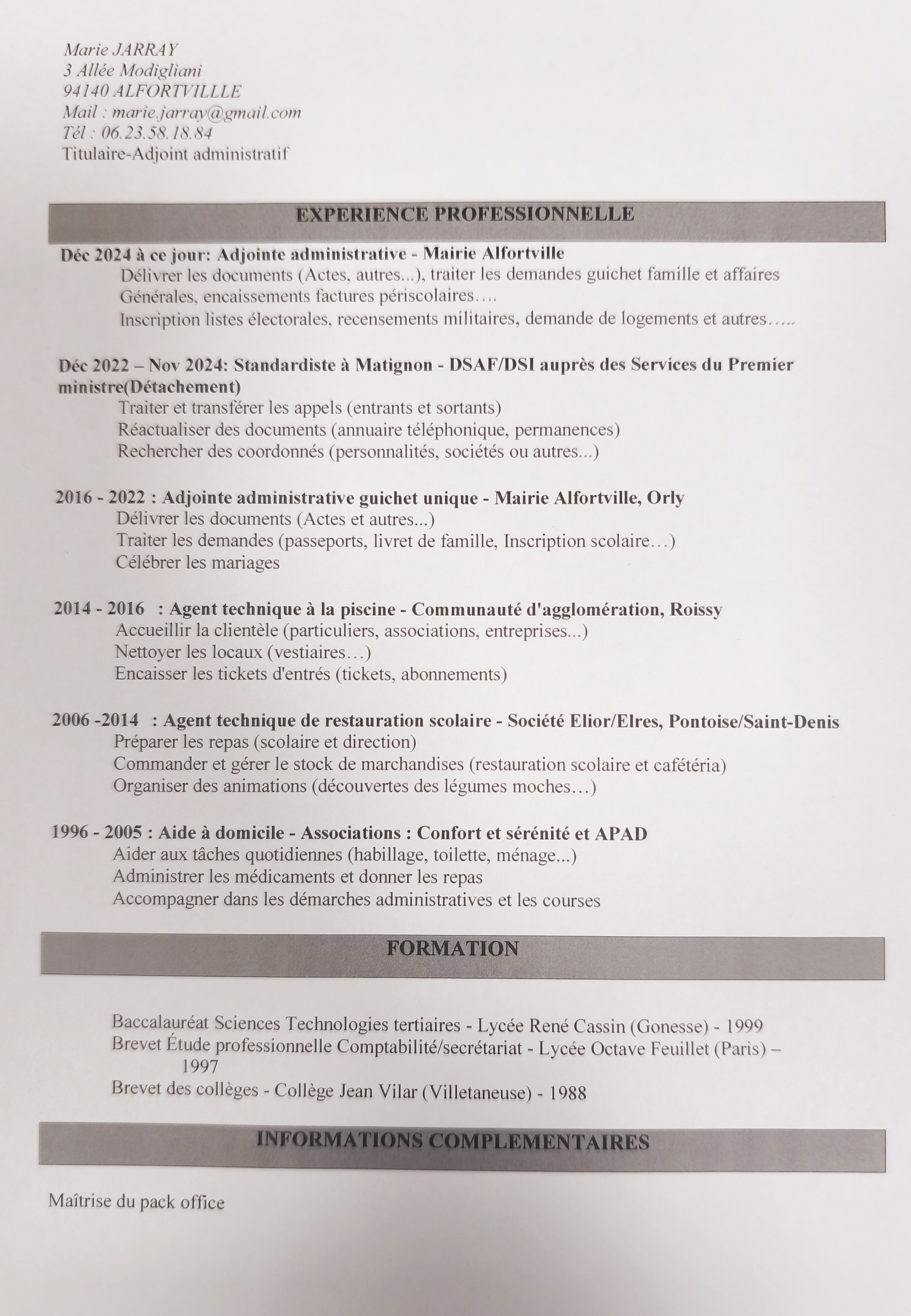 | Marie Jarray | Salarié du secteur public | Employés | Agent administratif / gestion | Télécharger | |