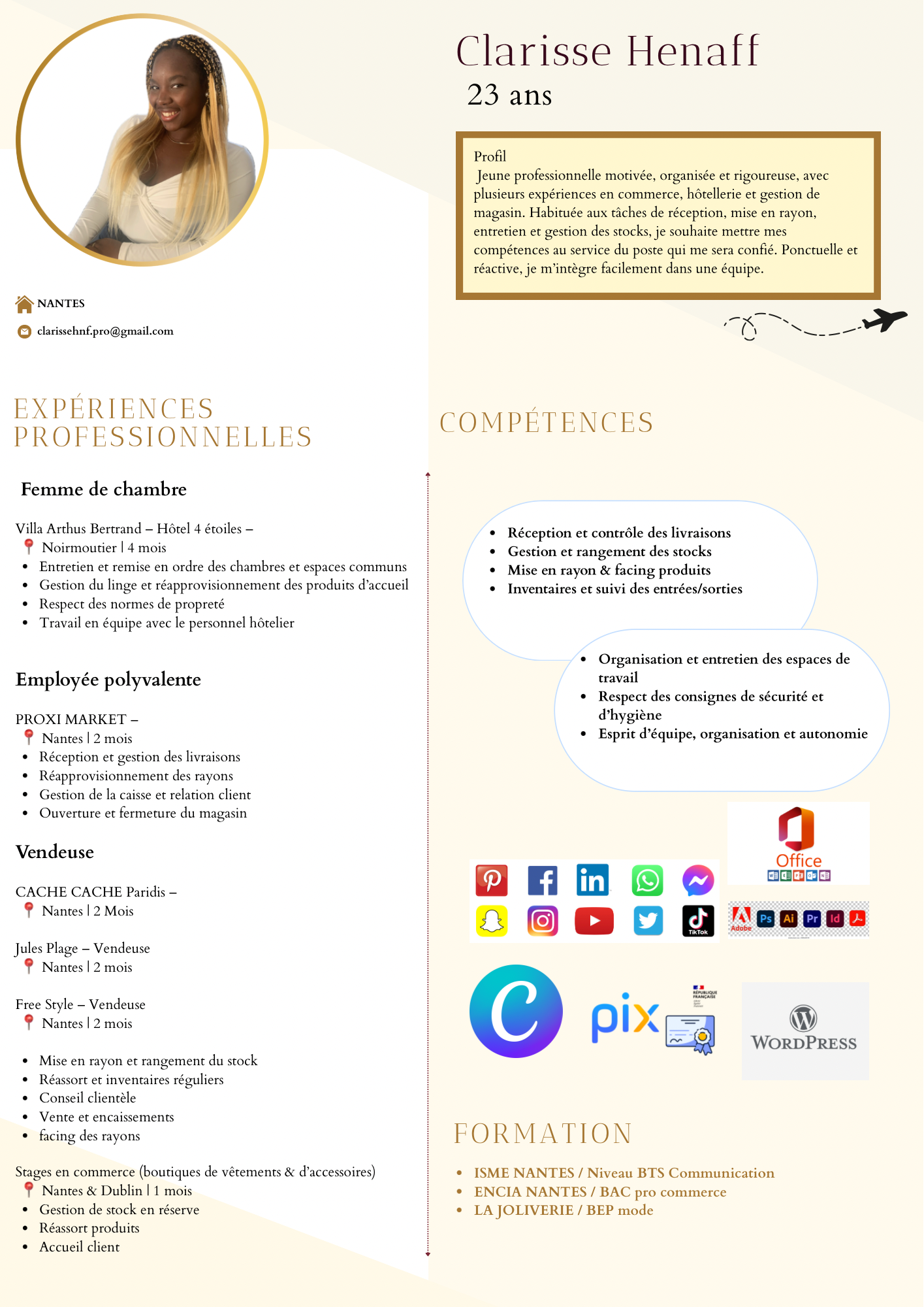 | Clarisse Henaff | En recherche d’emploi | Employés | Fonction accueil, secrétariat | Télécharger | |