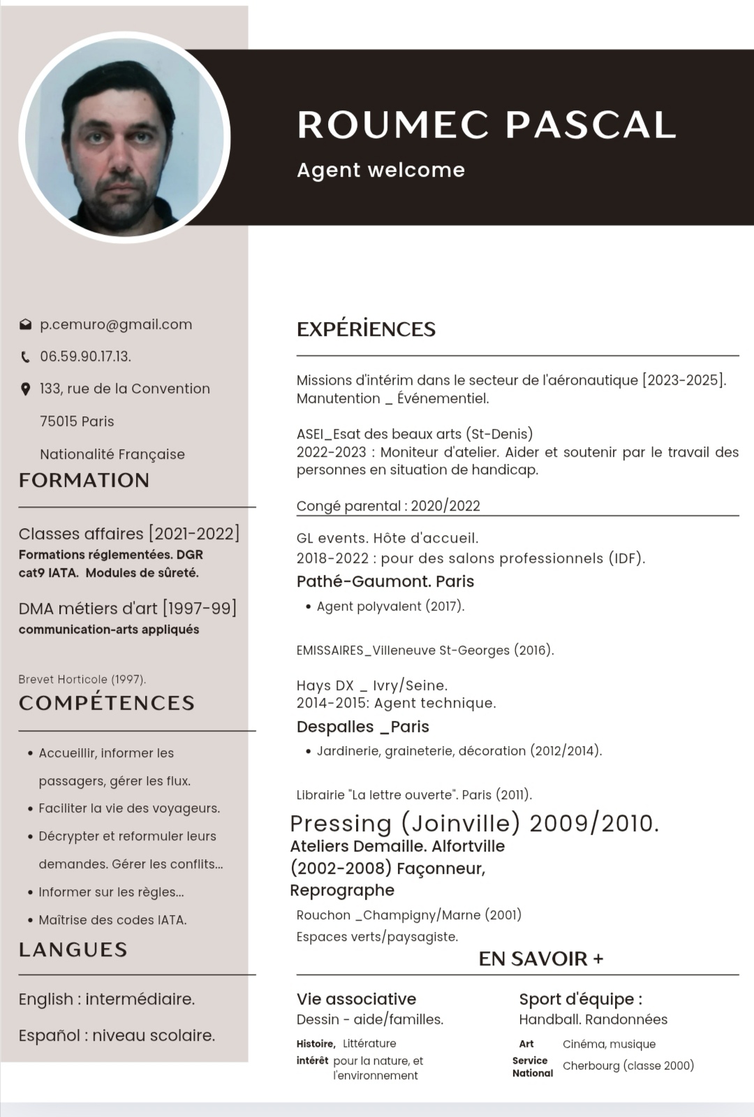 | Pascal Roumec | En recherche d’emploi | Employés | Agent administratif / gestion | Télécharger | |